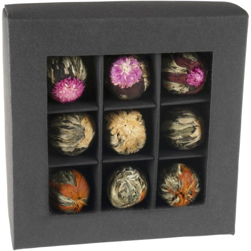 A Blooming Tea Box egy gyönyörű fekete dobozban érkezik, és kilenc virágzó teát tartalmaz, amelyek kivételesen exkluzív keveréket alkotnak. A legjobb eredmény érdekében körülbelül 600 ml-es átlátszó teáskannában kell főzni.