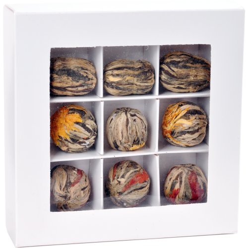 A Blooming Tea Box, amely egy gyönyörű gyöngydobozban található, kilenc virágzó teát tartalmaz, amelyek kivételesen exkluzív keveréket alkotnak. A legjobb eredmény érdekében körülbelül 600 ml-es átlátszó teáskannában kell főzni.